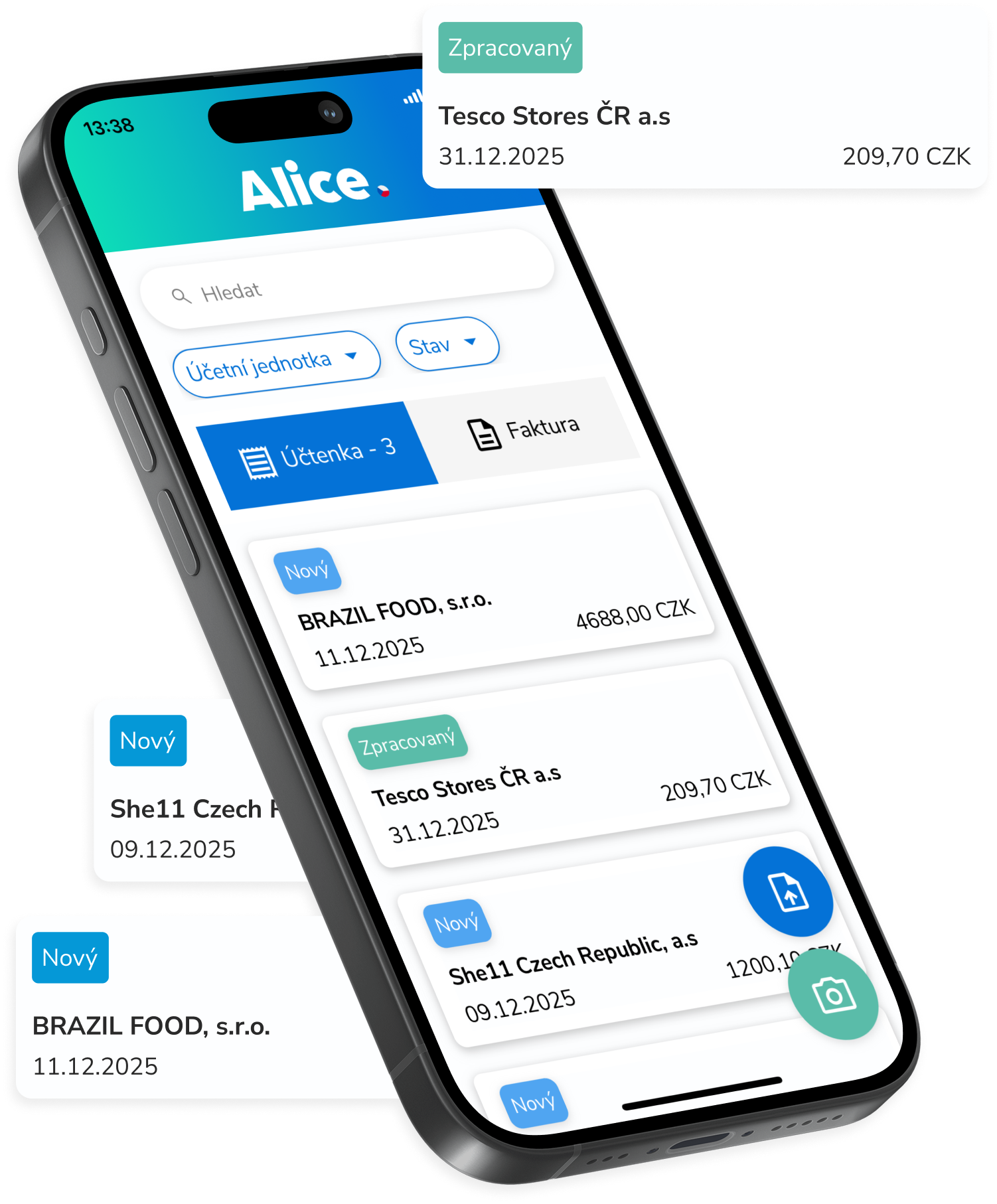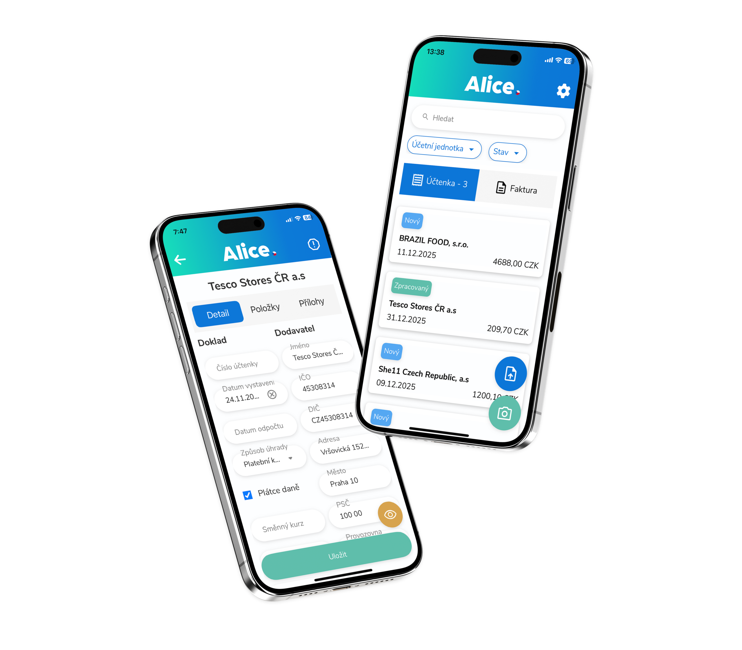 Alice je vaše parťačka při vytěžování daňových dokladů. Poradí si s fakturami a účtenkami a napojíte ji na běžně dostupné účetní systémy. Díky umělé inteligenci se aplikaci učí s každým novým dokladem a data vytěžuje s přesností 98 %.